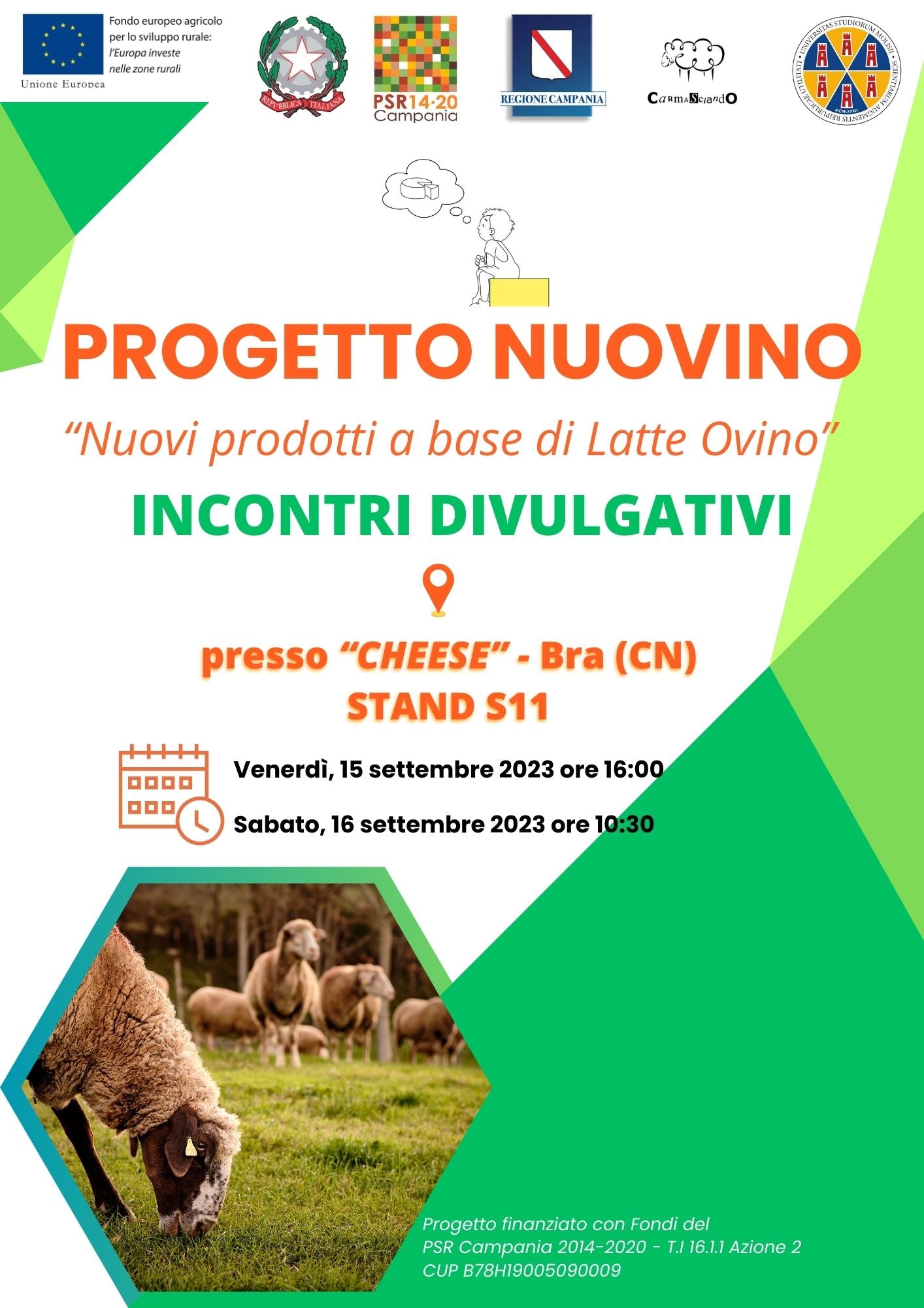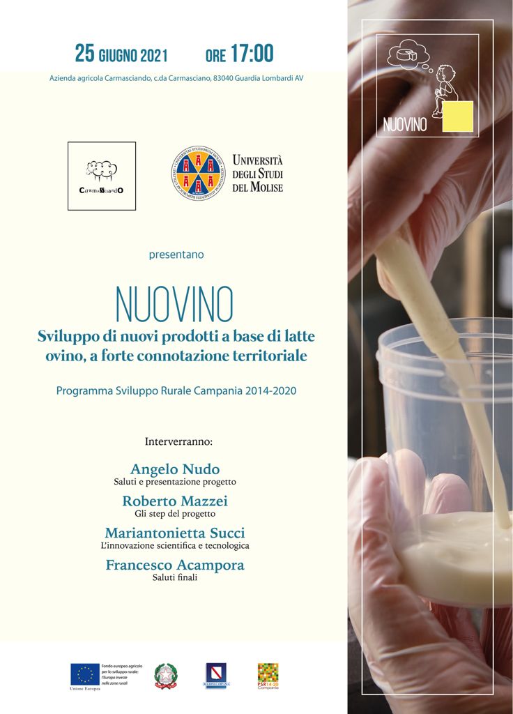 PSR Campania 2014-2020 - Tipologia Intervento 16.1.1 Azione 2 – Progetto NUOVINO “Sviluppo di nuovi prodotti a base di latte ovino a forte connotazione territoriale” – CUP B78H19005090009